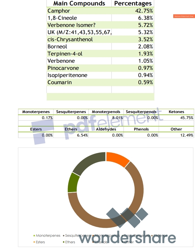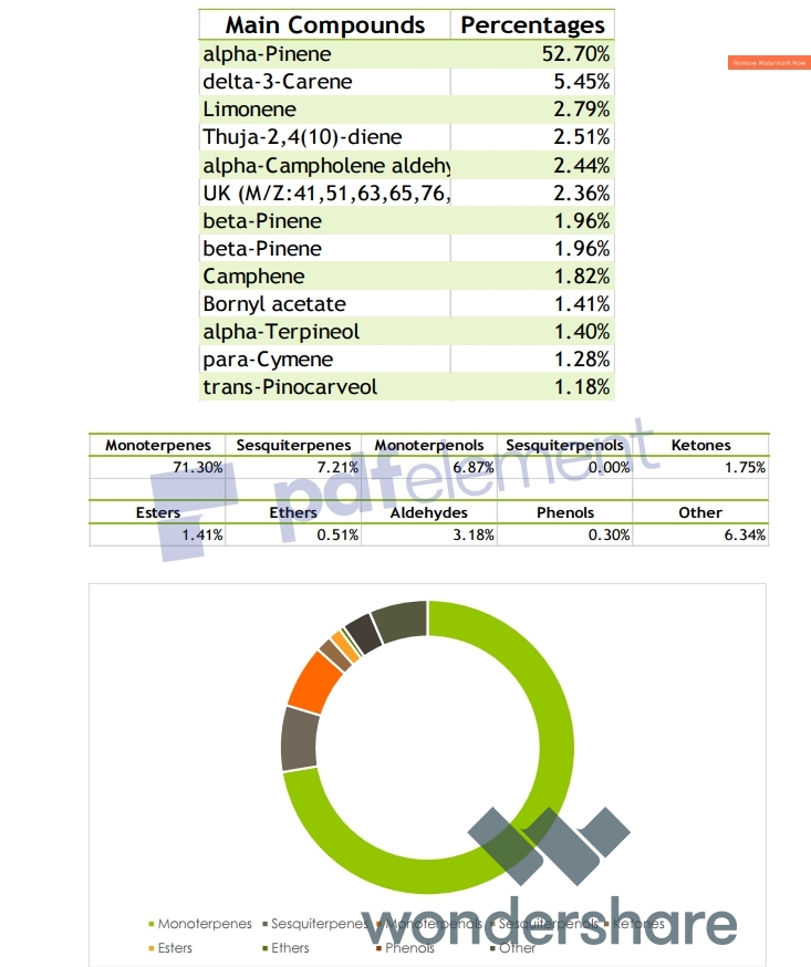 This is the chemistry of the Pinon Pine Cone Hydrosol We are SUPER PROUD of this: